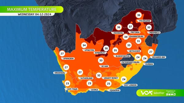A heatwave is sweeping across South Africa, with persistently high temperatures expected to affect Gauteng, Limpopo, Mpumalanga, and the northern parts of KwaZulu-Natal through Friday, 6 December 2024. These conditions are particularly severe in the Lowveld regions of Limpopo and Mpumalanga, where discomfort and potential health risks due to heat exhaustion are a concern.