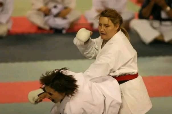However, she managed to be placed number two in the Open Ladies Kumite (fighting) at the SAJKA Nationals championships at the age of 43 and again at 44 when she then had to have knee surgery.