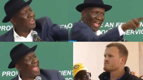 Police Minister Bheki Cele refuses to apologise to anti-crime activist Ian Cameron. He shouted at him to ‘Shut Up’ at an Imbizo in Gugulethu last year. pic.twitter.com/m1nx4Ixws8