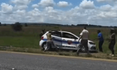 While looting from crash scenes isn’t new in South Africa with community members often descending on accident sites to collect fallen goods this time, it wasn’t civilians. It was the police themselves.