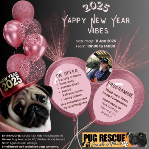 Start your year with fun and support for a good cause at the “Yappy New Year Vibes” fundraising event! Join Pug Rescue South Africa for a lively morning full of festivities, shopping, and entertainment—all while helping to raise funds for veterinary bills and care for beloved pugs.