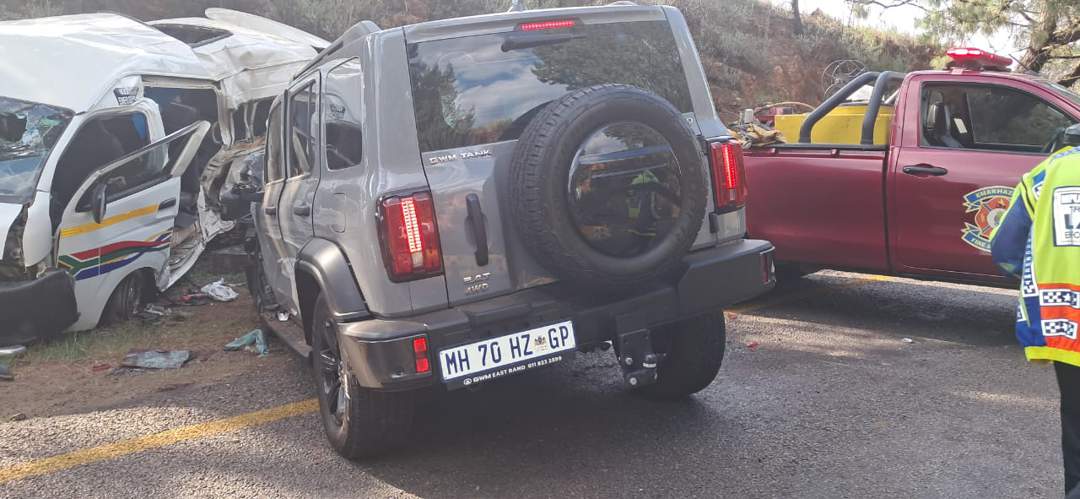 A quiet Sunday afternoon near Dullstroom turned tragic when a GWM Tank SUV and a minibus taxi collided on the R540, killing six passengers and injuring eight others.